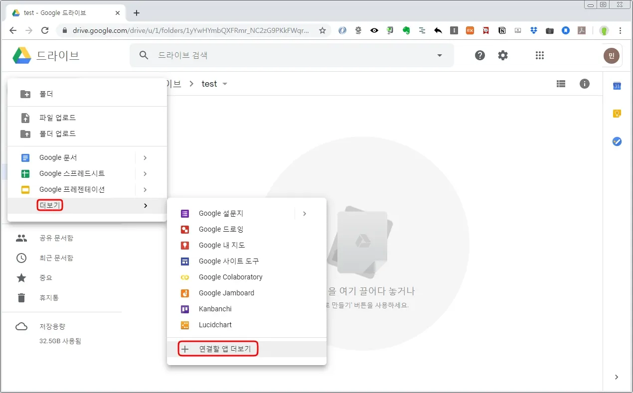 좌측 상단의 [+새로만들기] 버튼 > 더보기 > 연결할 앱 더보기를 선택한다.