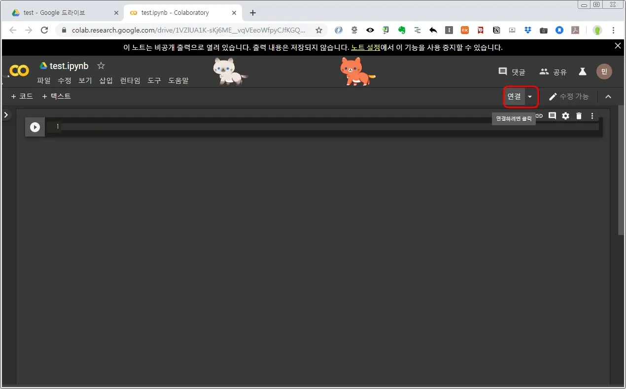 아래 그림과 같이 연결 버튼을 클릭한다.