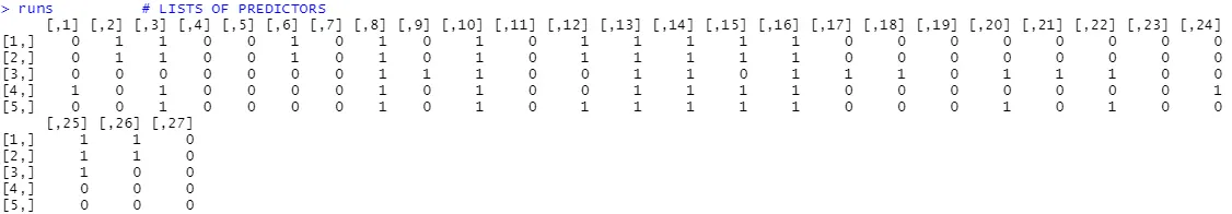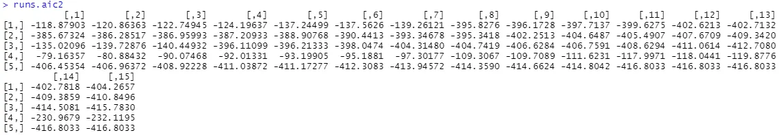 runs2[k,] = run.current #최종적으로 제일 작은 aic를 가진 subset이 골라짐.
