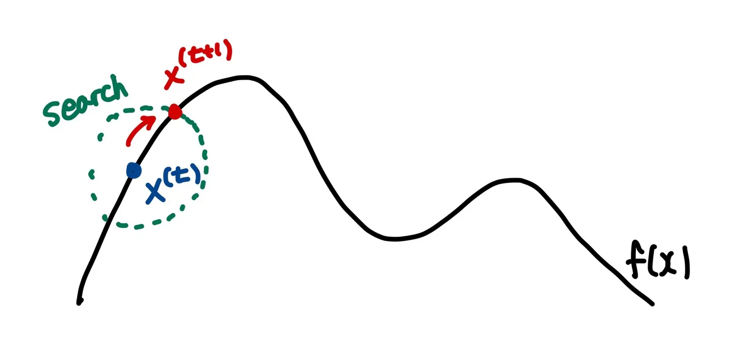 우리는 우선 주변값을 정의해주어야 한다. 우리는 현재 위치에서 주변값을 탐색하고, 그 주변값들을 다음 update의 후보값(candidate solution)으로 선정하여 후보값과 현재값을 비교해서 update를 진행한다. 따라서 우리는 무엇을 주변값 또는 이웃값(Neighborhood)으로 설정할 것인지를 우선 정의해야 한다.