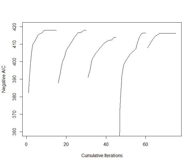 plot(1:(itr*num.starts),-c(t(runs.aic)),xlab="Cumulative Iterations",