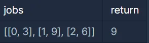 각 작업에 대해 [작업이 요청되는 시점, 작업의 소요시간]을 담은 2차원 배열 jobs가 매개변수로 주어질 때, 작업의 요청부터 종료까지 걸린 시간의 평균을 가장 줄이는 방법으로 처리하면 평균이 얼마가 되는지 return 하도록 solution 함수를 작성해주세요. (단, 소수점 이하의 수는 버립니다)