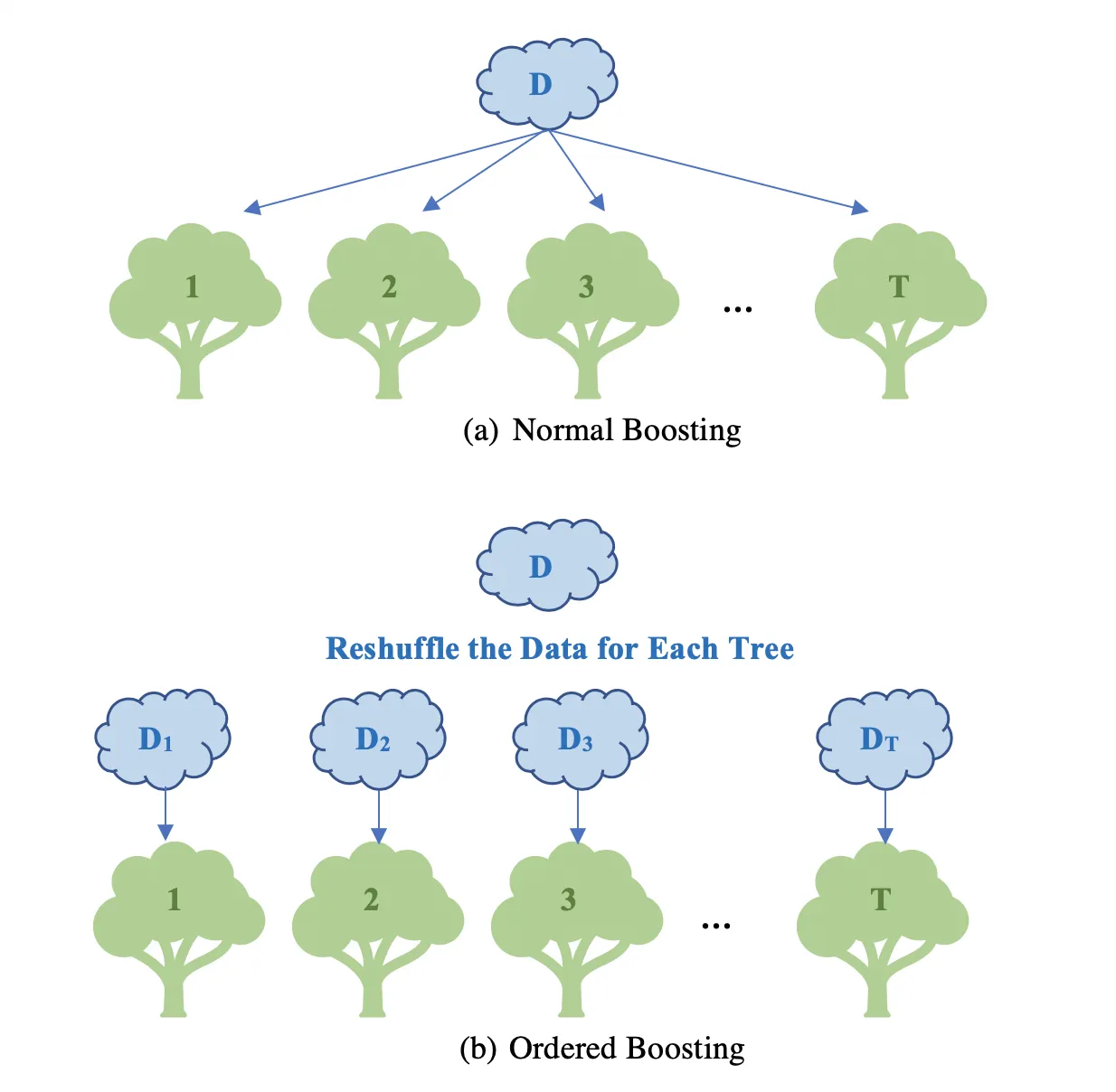 Level-wise 방식, Ordered Boosting → 과적합 방지