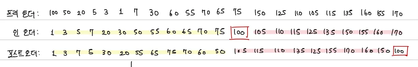 우선 솔루션 포인트는 각 오더 방식들의 순회 순서를 이용하는 것이다.