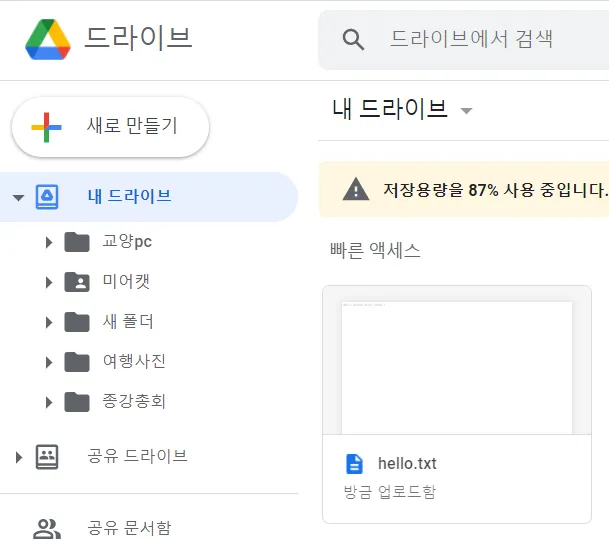 # 내 드라이브는 원격서버가 아니라 로컬서버로 간주하므로 명령어 실행시 앞단에 !를 붙이지 않는다.