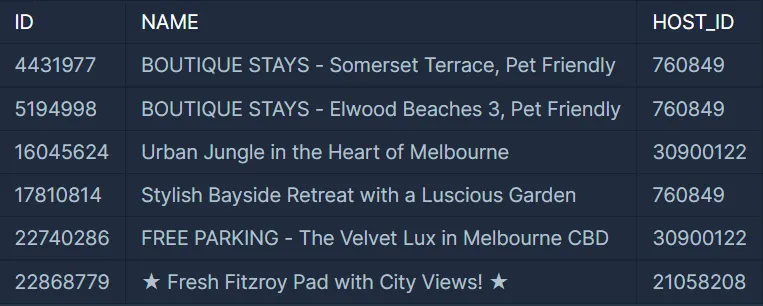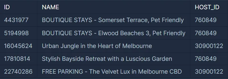 GROUP BY HOST_ID