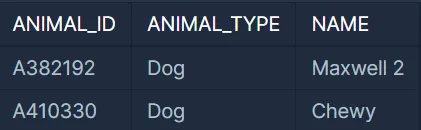 SELECT X.ANIMAL_ID, X.ANIMAL_TYPE, X.NAME