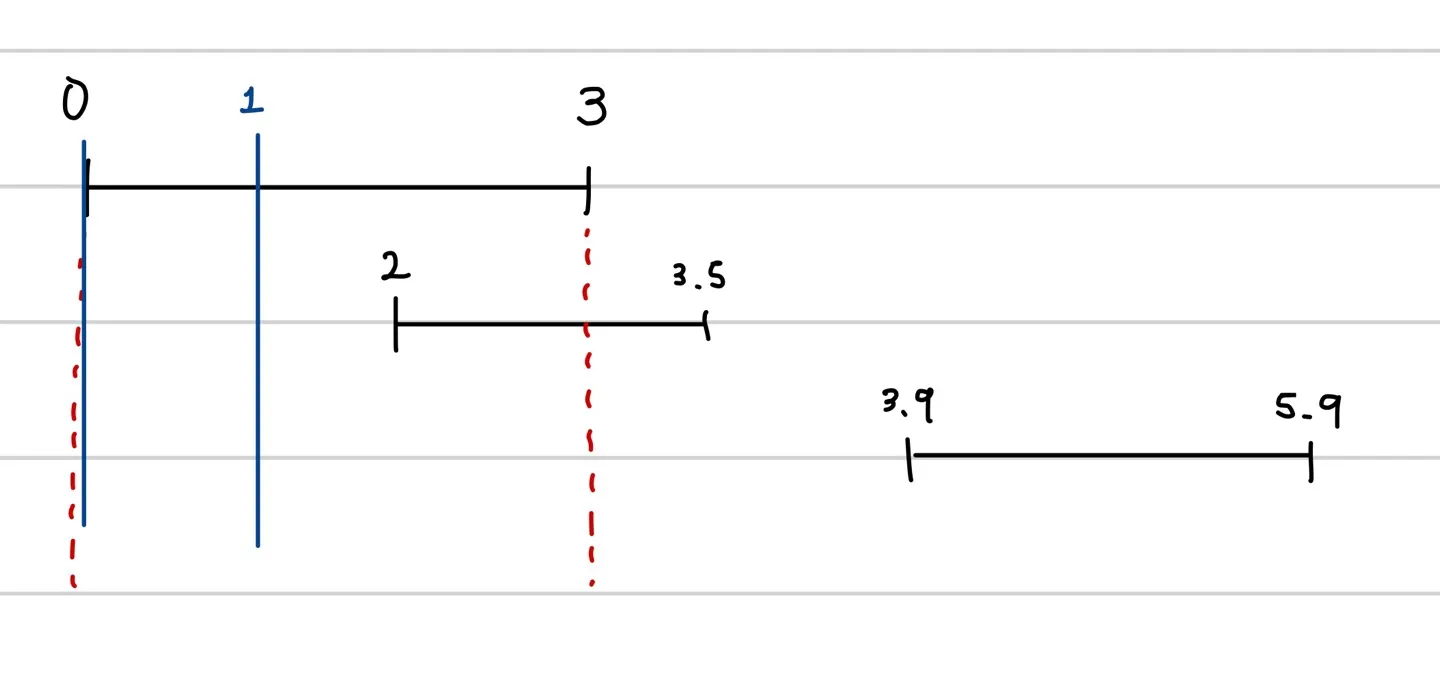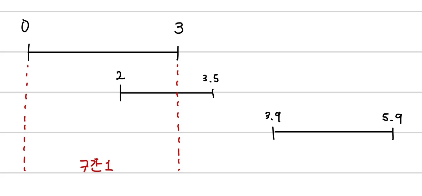 단, 0~3 이전에 로그가 없는 경우에 가장 좋다는 것이다. 만약 0~3 이전에 로그가 있다면 다음과 같이 구간1에서 가장 구간은 3~4가 아닐 수 있다.