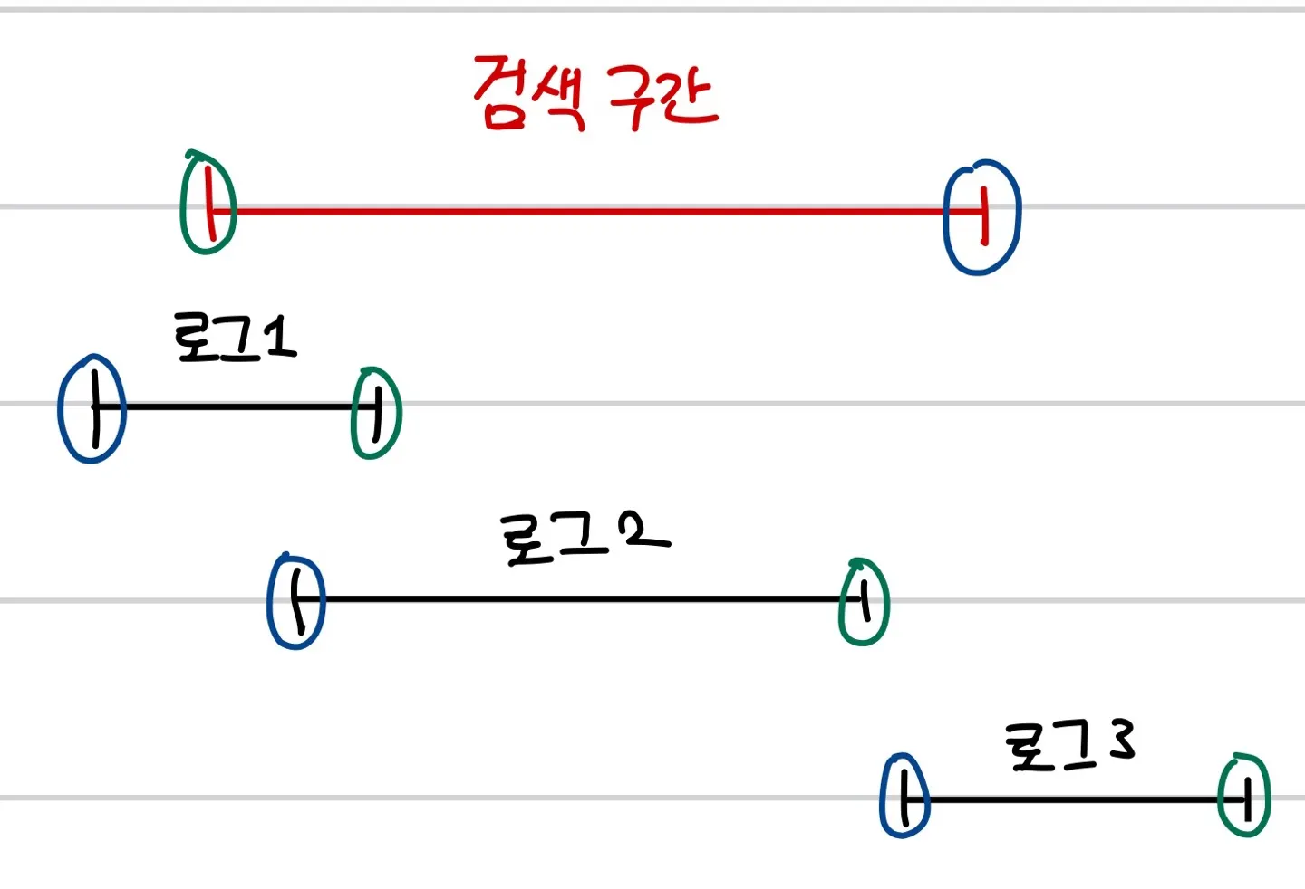 로그의 끝 시간이 검색 시작 시간보다 크거나 같아야 한다.