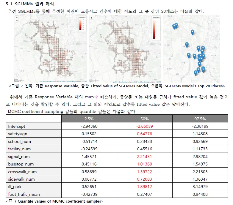 SGLMMs(Spatial Generalized Linear Mixed Models)과 ICAR(Intrinsic Auto-Regressive Model) 등 다양한 공간 모형 등이 사용되었다.