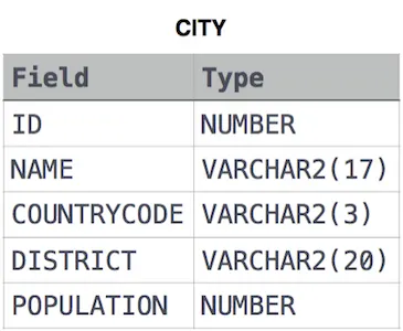The CITY table is described as follows: