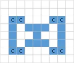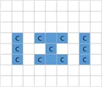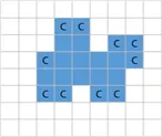 따라서 아래 [그림 1] 모양과 같은 얼음(파란으로 표시된 부분)라면 C로 표시된 모든 얼음 격자는 한 시간 후에 사라진다.