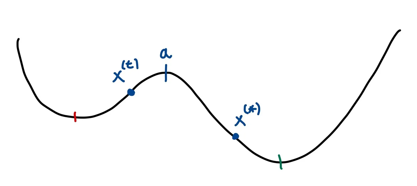 위의 그림과 같이 에서 proposal density 등의 방법으로 의 값을 제안한다면, global minimum으로 도달할 수 있다.