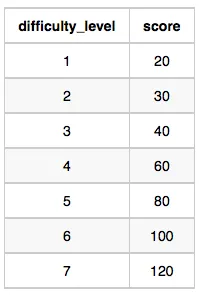 Difficulty: The difficult_level is the level of difficulty of the challenge, and score is the score of the challenge for the difficulty level.