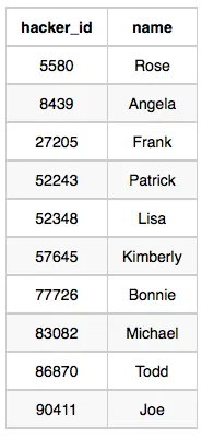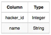 Hackers: The hacker_id is the id of the hacker, and name is the name of the hacker.
