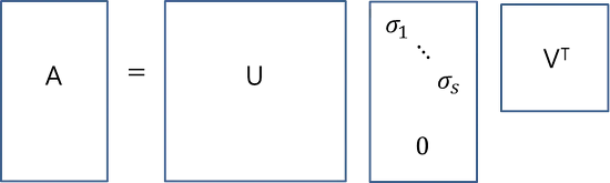 실수공간에서 임의의 m x n 행렬에 대한 특이값 분해(SVD)는 다음과 같이 정의된다.