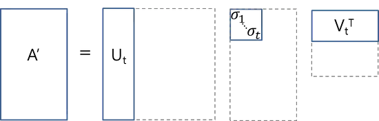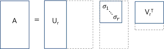 위의 이미지에서는 0인 singluar value 뿐만 아니라 다른 singular value까지 제거한 형태로, 이를 truncated SVD라고 부른다.