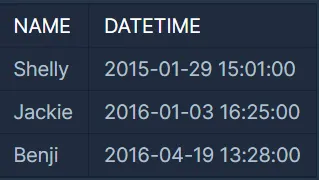 SELECT X.NAME NAME, X.DATETIME DATETIME