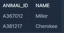 이 중 아픈 동물은 Miller와 Cherokee입니다. 따라서 SQL문을 실행하면 다음과 같이 나와야 합니다.